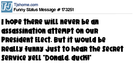- # 172799 Imagine someone trying to assassinate Trump and the secret service having to yell ,Donald Duck