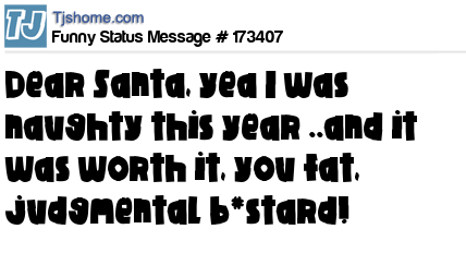 - # 80941 Dear Santa, I've been a naughty girl all year long, and it was worth it you judgemental fat ba$tard!