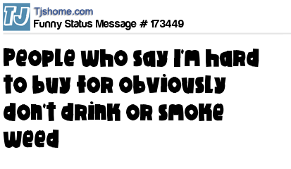 X says People who say I'm hard to buy for obviously don't drink or smoke weed