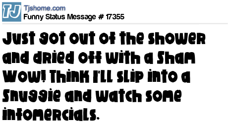 X Just got out of the shower and dried off with a Sham Wow! Think I'll slip into a Snuggie and watch some infomercials.
