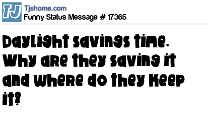 - # 157151 Just what is DAYLIGHT SAVINGS TIME and Why are we saving so much of it? Why can't the time change kick in on a Friday at 4pm?
