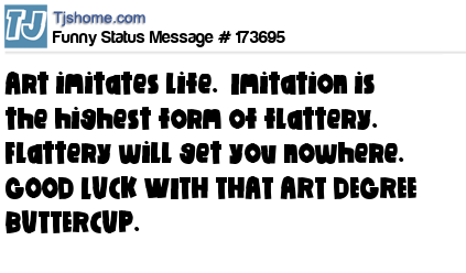 - # 102207 Art imitates life. Imitation is the highest form of flattery. Flattery will get you nowhere. So GOOD LUCK WITH THAT ART DEGREE!