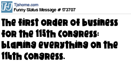 X says The first order of business for the 115th Congress: blaming everything on the 114th Congress.
