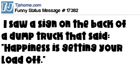 X I saw a sign on the back of a dump truck that said: "Happiness is getting your load off."