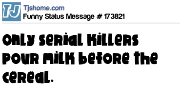 - # 134915 Slept over at a kids house once in third grade. Saw him pour milk into bowl first, then cereal. Never talked to him again. He's in jail now
