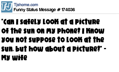 X "Can I safely look at a picture of the sun on my phone? I know you not suppose to look at the sun, but how about a picture?" - My wife