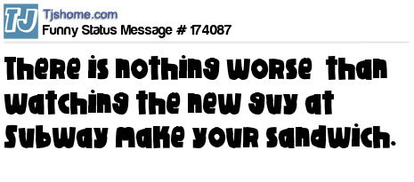 X says There is nothing worse than watching the new guy at Subway make your sandwich.