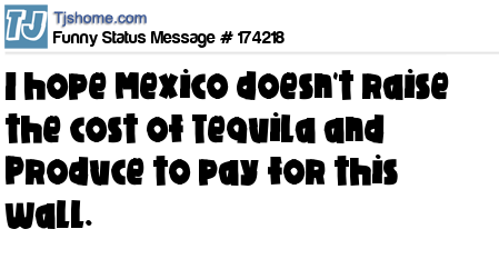 - # 174352 I hope Mexico doesn't raise the cost of Tequila to pay for this wall.