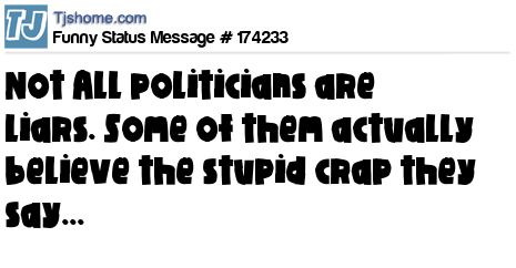 X says Not ALL politicians are liars. Some of them actually believe the stupid crap they say...