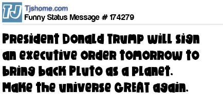 X says President Donald Trump will sign an executive order tomorrow to bring back Pluto as a planet. Make the universe GREAT again.
