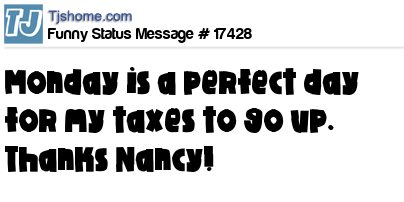 X says monday is a perfect day for my taxes to go up. Thanks Nancy!