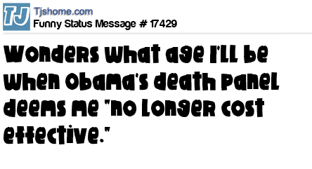 X wonders what age I'll be when Obama's death panel deems me "no longer cost effective."