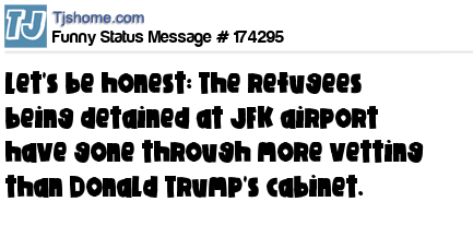 X says Let's be honest: The refugees being detained at JFK airport have gone through more vetting than Donald Trump's cabinet.