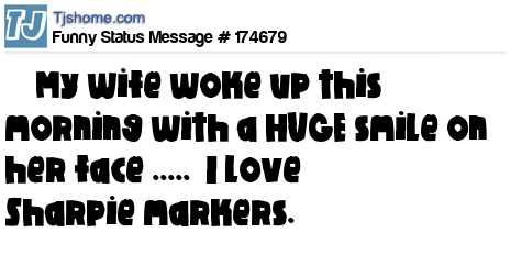 X says My wife woke up this morning with a HUGE smile on her face ..... I love Sharpie markers.