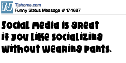 - # 156060 Social Media: Because I like to socialize with cool people without having to speak, wear pants or get off the couch.