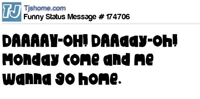 - # 204874 Daaaay-oh! Monday come and me wan go home...