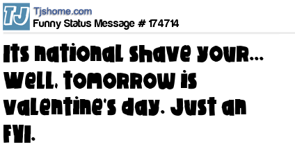 X Its national shave your... Well, tomorrow is valentine's day. Just an FYI.