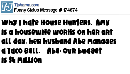 X says Why I hate House Hunters. Amy is a housewife works on her art all day, her husband Abe manages a Taco Bell. Abe: Our budget is $4 million