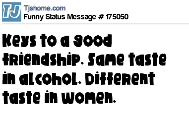 X says Keys to a good friendship. Same taste in alcohol. Different taste in women.
