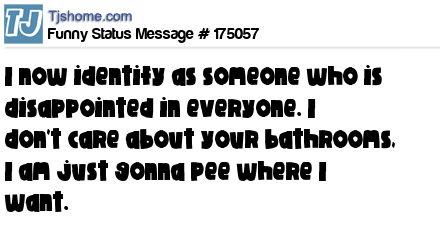 X says I now identify as someone who is disappointed in everyone. I don't care about your bathrooms, I am just gonna pee where I want.