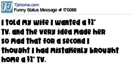 X says I told my wife I wanted a 72" TV, and the very idea made her so mad that for a second I thought I had mistakenly brought home a 72" TV.