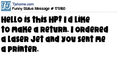 - # 147965 “Hello? HP? I’d like to make a return. I ordered a Laser Jet but you sent me a printer.”