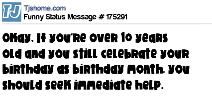 X says Okay. If you're over 10 years old and you still celebrate your birthday as birthday month, you should seek immediate help.