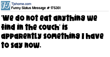 X says 'We do not eat anything we find in the couch' is apparently something I have to say now.