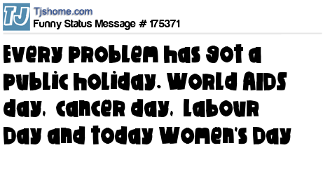 X says Every problem has got a public holiday. World AIDS day, cancer day, Labour Day and today Women's Day