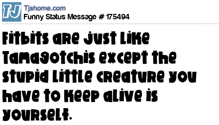 - # 175229 Fitbits are just like Tamagotchis, except the stupid little creature you have to keep alive is yourself.