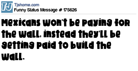 - # 175625 Mexicans aren't paying get for the wall, they'll be getting paid to build it.