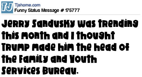 X says Jerry Sandusky was trending this month and I thought Trump made him the head of the Family and Youth Services Bureau.