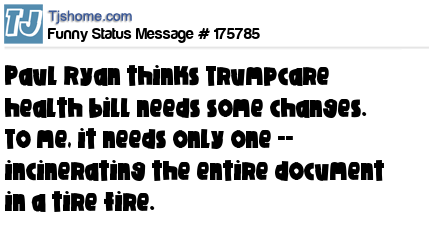 X says Paul Ryan thinks Trumpcare health bill needs some changes. To me, it needs only one -- incinerating the entire document in a tire fire.