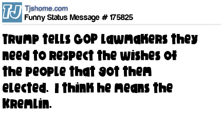 X says Trump tells GOP lawmakers they need to respect the wishes of the people that got them elected. I think he means the Kremlin.