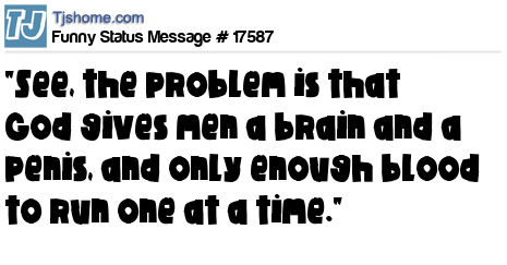X says "See, the problem is that God gives men a brain and a penis, and only enough blood to run one at a time."