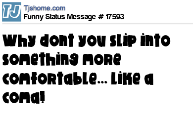 - # 32862 Why don't you slip into something more comfortable? Like a coma.