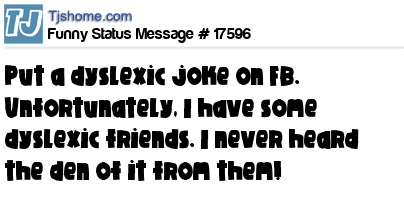 X put a dyslexic joke on FB. Unfortunately, I have some dyslexic friends. I never heard the den of it from them!