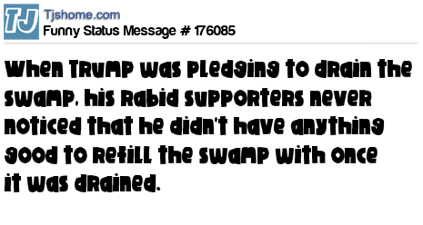 X says When Trump was pledging to drain the swamp, his rabid supporters never noticed that he didn't have anything good to refill the swamp with once it was drained.
