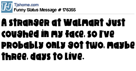 X says A stranger at Walmart just coughed in my face, so I've probably only got two, maybe three, days to live.