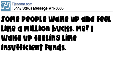 - # 189310 Most people wake up feeling like a million bucks, me? I wake up feeling like insufficient funds.