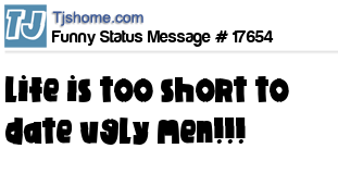 - # 146141 Well I don't want to date anyone that's ugly, but I also don't want to date anyone that's stupid. So I'm single.