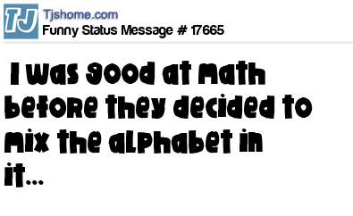 - # 90352 I was good at math, until they decided to start mixing in the alphabet too.