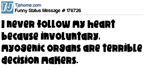 - # 147572 I never follow my heart because involuntary, myogenic organs are terrible decision makers