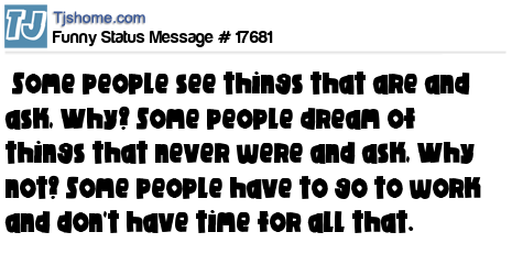 X says Some people see things that are and ask, Why? Some people dream of things that never were and ask, Why not? Some people have to go to work and don't have time for all that.