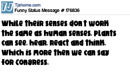 X says While their senses don’t work the same as human senses, plants can see, hear, react and think. Which is more then we can say for Congress.