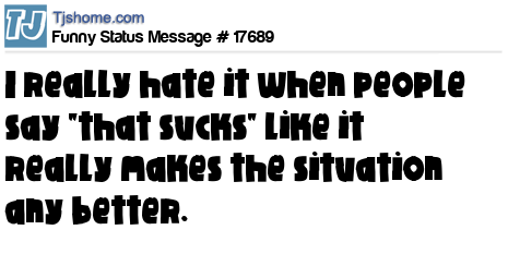 X I really hate it when people say "that sucks" like it really makes the situation any better.