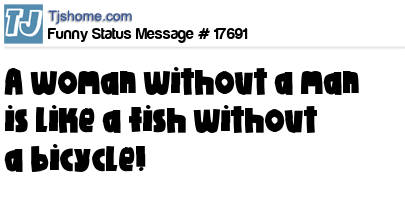 - # 117230 A woman without a man is like a fish without a bicycle.