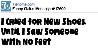 - # 181168 I used to complain because I had no shoes. Then I met a man who had no feet. So I asked him if he had any shoes I could have since he didn't need them anymore.