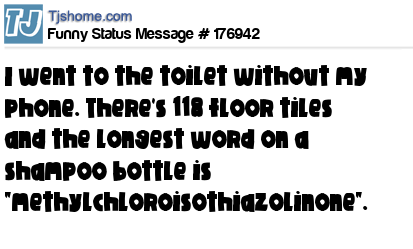 X says I went to the toilet without my phone. There's 118 floor tiles and the longest word on a shampoo bottle is "methylchloroisothiazolinone".