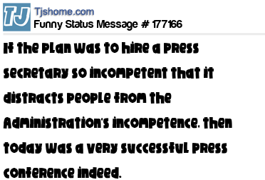 X says If the plan was to hire a press secretary so incompetent that it distracts people from the Administration's incompetence, then today was a very successful press conference indeed.